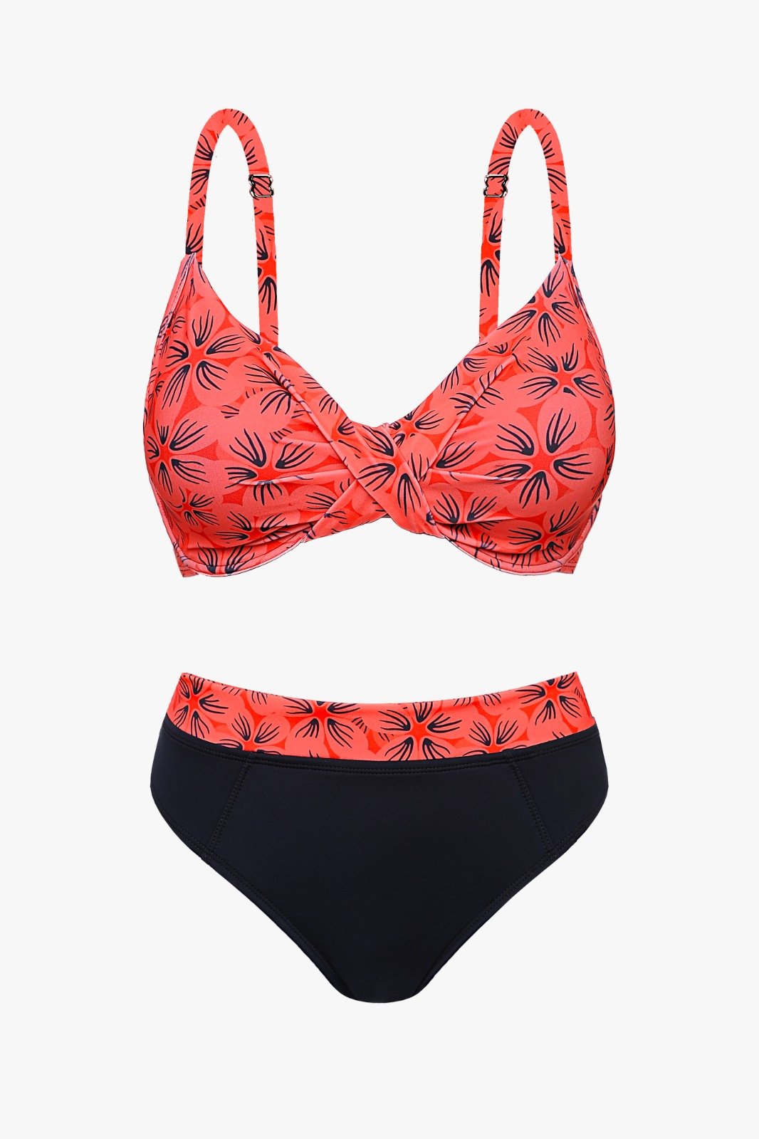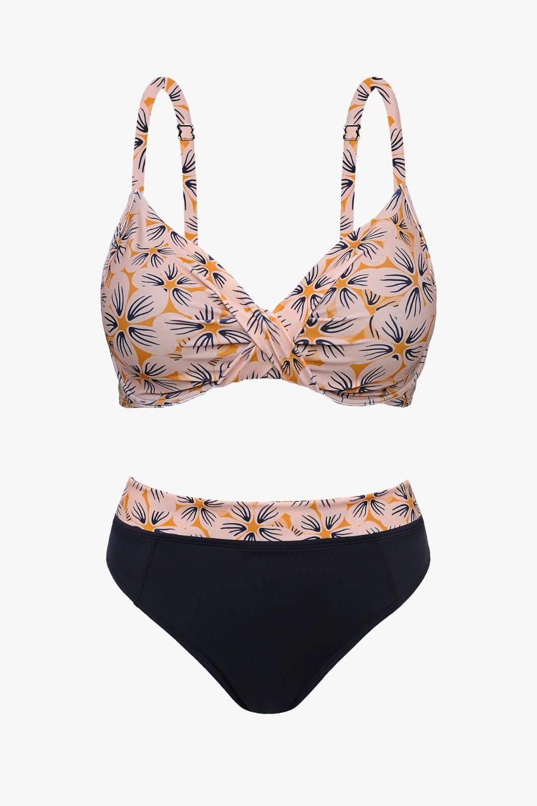 BIKINI ESTAMPADA FLOREADA CORPIÑO Y FAJA EN TAZA «SOFT» Y BOMBACHA LISA.