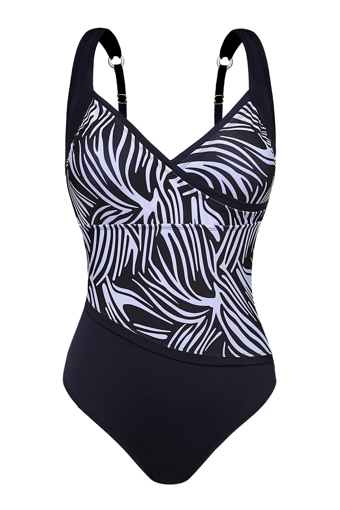 MALLA ENTERA LISA COMBINADA C/ ESTAMPADO Y RECORTE ASIMÉTRICO.