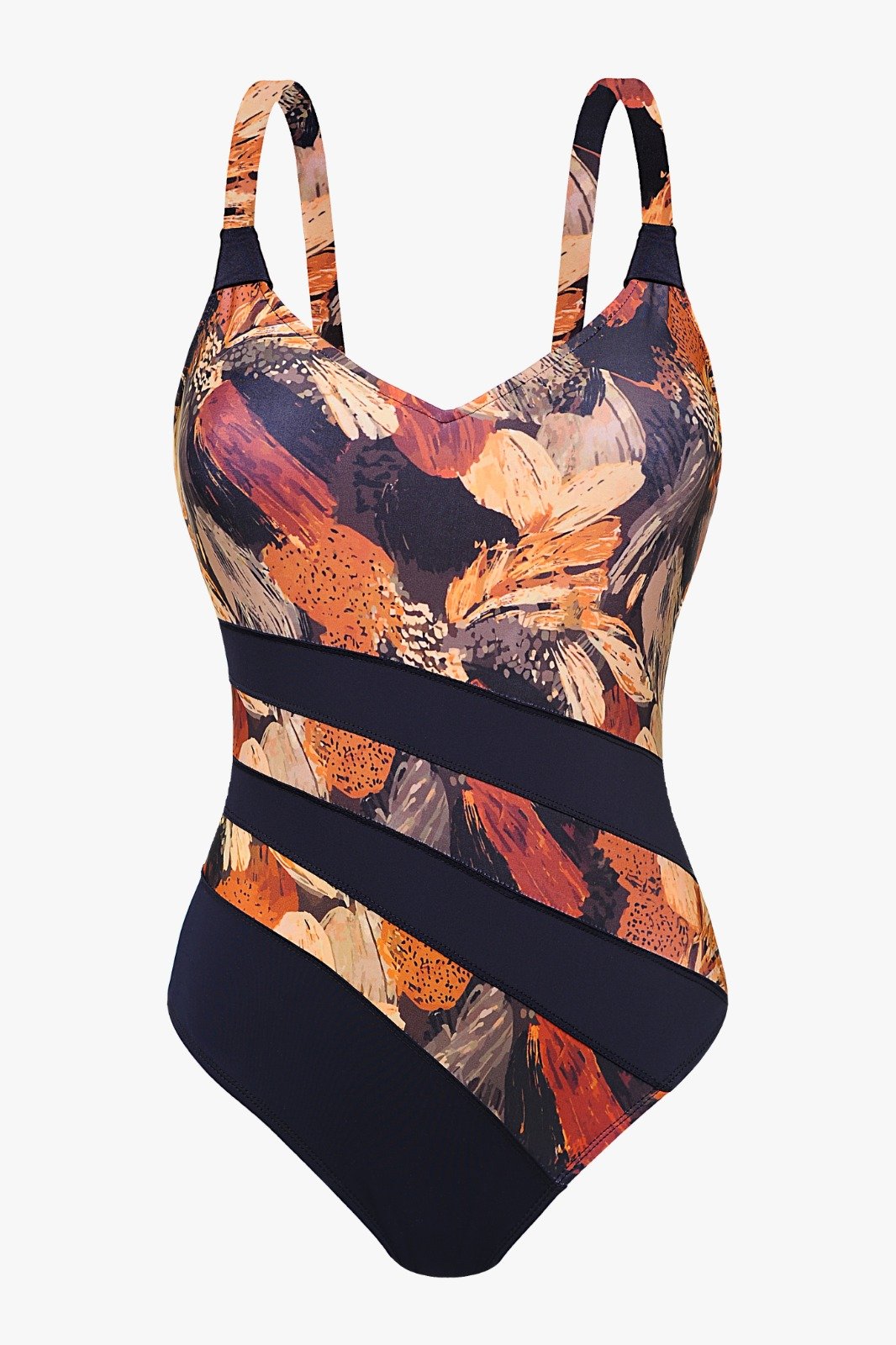 MALLA ENTERA LISA COMBINADA C/BANDAS ASIMÉTRICAS EN DELANTERO.