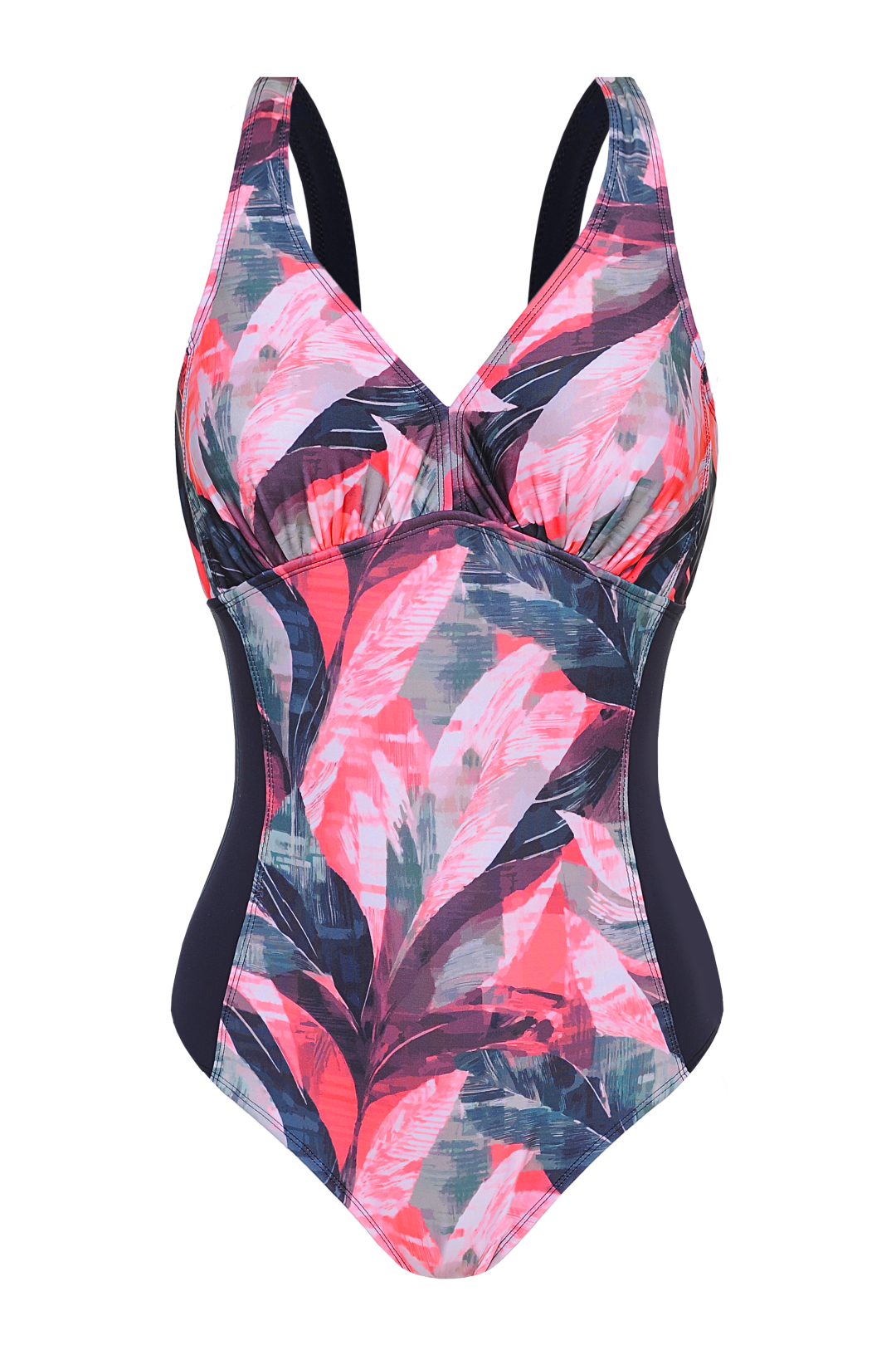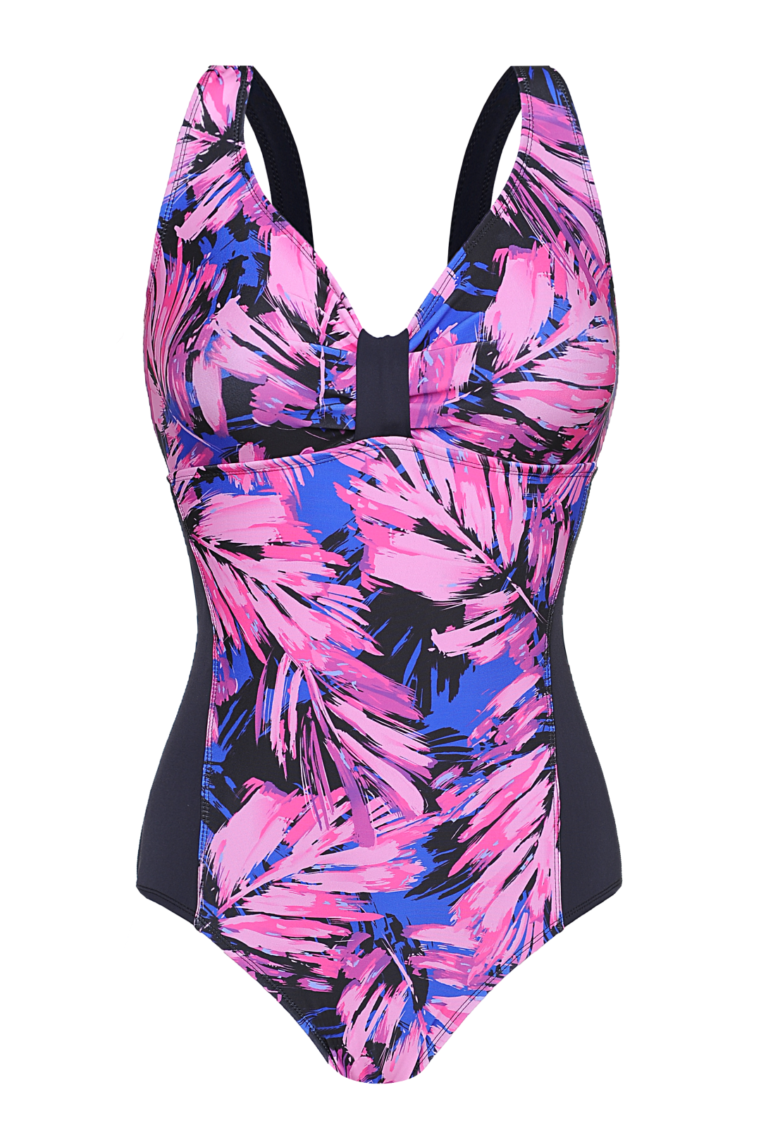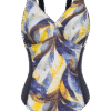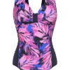 MALLA ENTERA LISA COMBINADA CON ESTAMPADO FLOREAL Y RECORTE CON ESPALDA LISA.